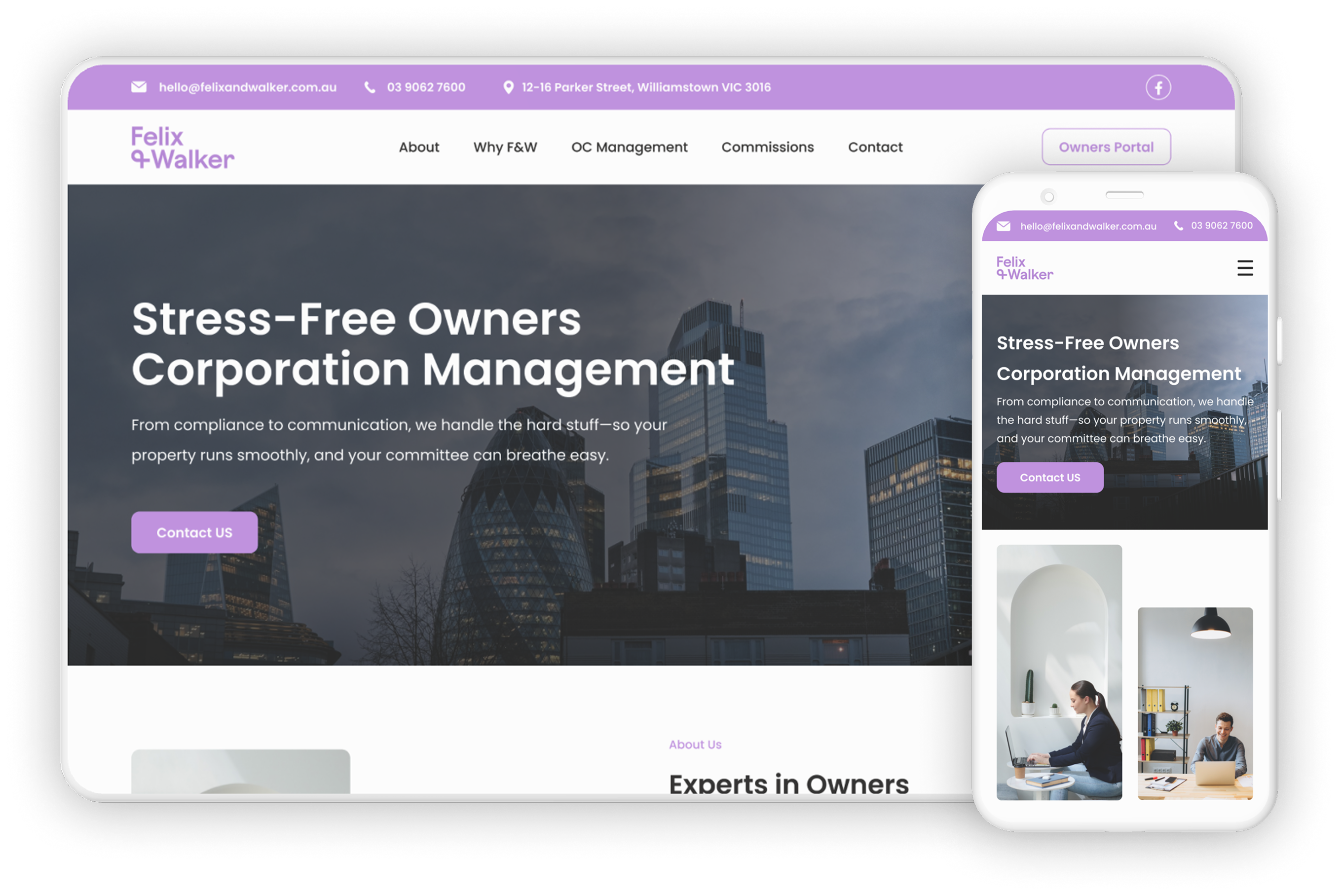 Felixand & Walker, a real estate and strata management company, needed a modern, user-friendly website. Their previous site lacked clarity, had confusing navigation, and was not optimized for conversions. We redesigned the website in Figma and developed it in WordPress, focusing on a clear structure, trust-building, and a smooth user experience.